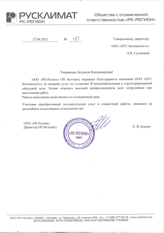 Монтаж интеллектуальной цифровой системы видеонаблюдения Trassir в офисе и складе компании Русклимат